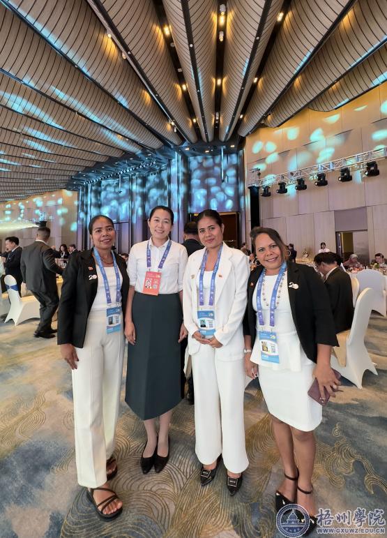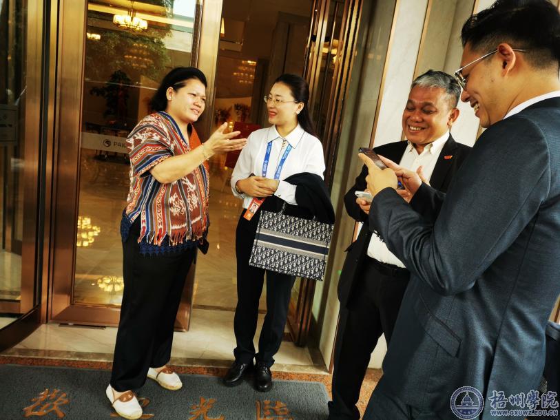 为自治区政协副主席彭健铭、东帝汶国家官员提供翻译服务的李翠萍也是第一次接触这么高级别的翻译活动,“我的压力是蛮大的。除了翻译上的事情,还有外事接待等工作上的未知的领域上的一些问题等待着我去解决。”刚开始接到通知的李翠萍负责的是其他国家,但到了现场发现做了临时调整,致使她先前做的准备没有派上用场,在此压力之下,学校各级领导、老师、团队都给予了她很多关心与支持,这使得她的压力得到缓解,最后顺利地完成了此次工作。