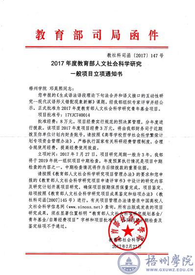 潜心致学寻师道。为了进一步提高自己的能力以及对语言学的无限热爱,邓昊熙博士继续攻读了硕士研究生和博士研究生。邓昊熙博士讲到,“我很庆幸在攻读硕士学位期间,我的老师几乎都是当时国内形式语言学中的佼佼者,能够聆听他们的讲授让我觉得受益匪浅。而他们当中的很多人如今依然活跃在国内形式语言学舞台上,这给我很大的鼓励”。这更加坚定了语言学是终生灵魂伴侣的信念。在读硕期间,他近距离地接触到一些海外的著名形式语言学家,了解到学术发展前沿动态。读博时,他的导师曾经很语重心长地说:“昊熙,你选择走形式语言学这条路注定要比别人付出得更多,注定要比别人更耐得住寂寞,注定要比别人辛苦”。当时邓昊熙博士很受感动,导师对他学习艰辛度的认同和鼓励,让他在语言学学习的道路上充满了动力。此外,他还提到同事、同学、朋友、家人也以各种不同的方式激励和支持过他。可见,“遇良师,交益友,知感恩”是邓昊熙博士在语言学学习上一往无前的“定海神针”。功夫定不负有心人,潜心学问的过程中,邓昊熙博士也深入科研并取得一些学术成果,如:2022年申报的国家社科基金项目(跨语言视角下成分复现的句法合并-接口层互动性研究)已经公示;2017年获批立项主持教育部人文社会科学研究项目(生成语法语段理论下句法合并和语义接口的互动性研究-现代汉语形义错配现象新解);2020年在《解放军外国语学院学报》第3期发表学术论文——最简句法中特征继承机制的若干理论和经验问题;等等。