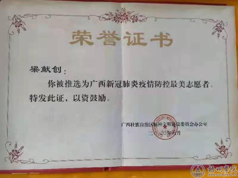 [校友故事]我校校友梁献创获评广西新冠肺炎疫情防控最美志愿者