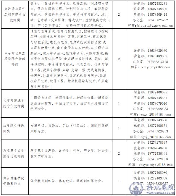 1.报名:从公告发布之日起,全年有效,招满即停。请下载填写《梧州学院公开招聘工作人员信息登记表》,直接发电子邮件至wzxyrczp@163.com;或者相关二级学院邮箱。邮件标题注明:本人姓名+应聘岗位。不收取任何考试费用。