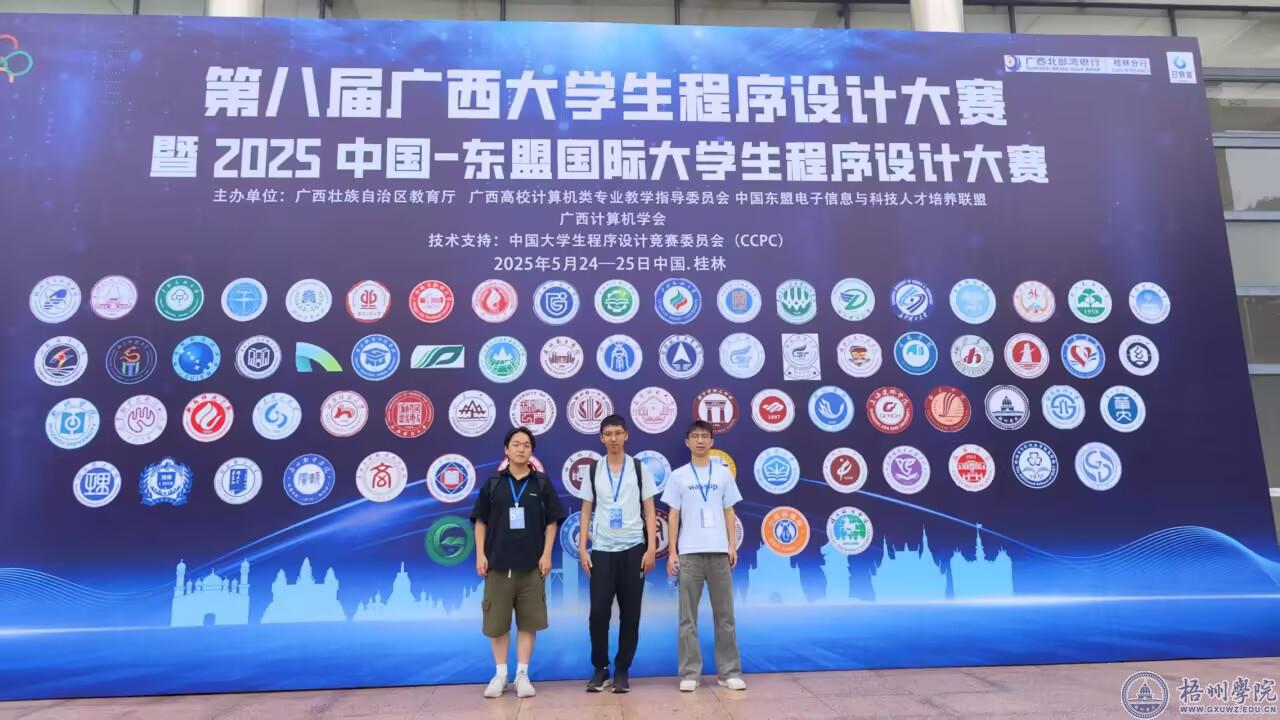 5月25日,第八届广西大学生程序设计大赛在桂林电子科技大学落幕。来自大数据与软件工程学院的陈健宇、刘斯君和关子俊同学组成团队参赛。去年该团队获得铜奖,团队历经一年的潜心学习和淬炼,个人能力提升明显,团队配合更加默契,最终斩获第八届广西大学生程序设计大赛的金奖。
