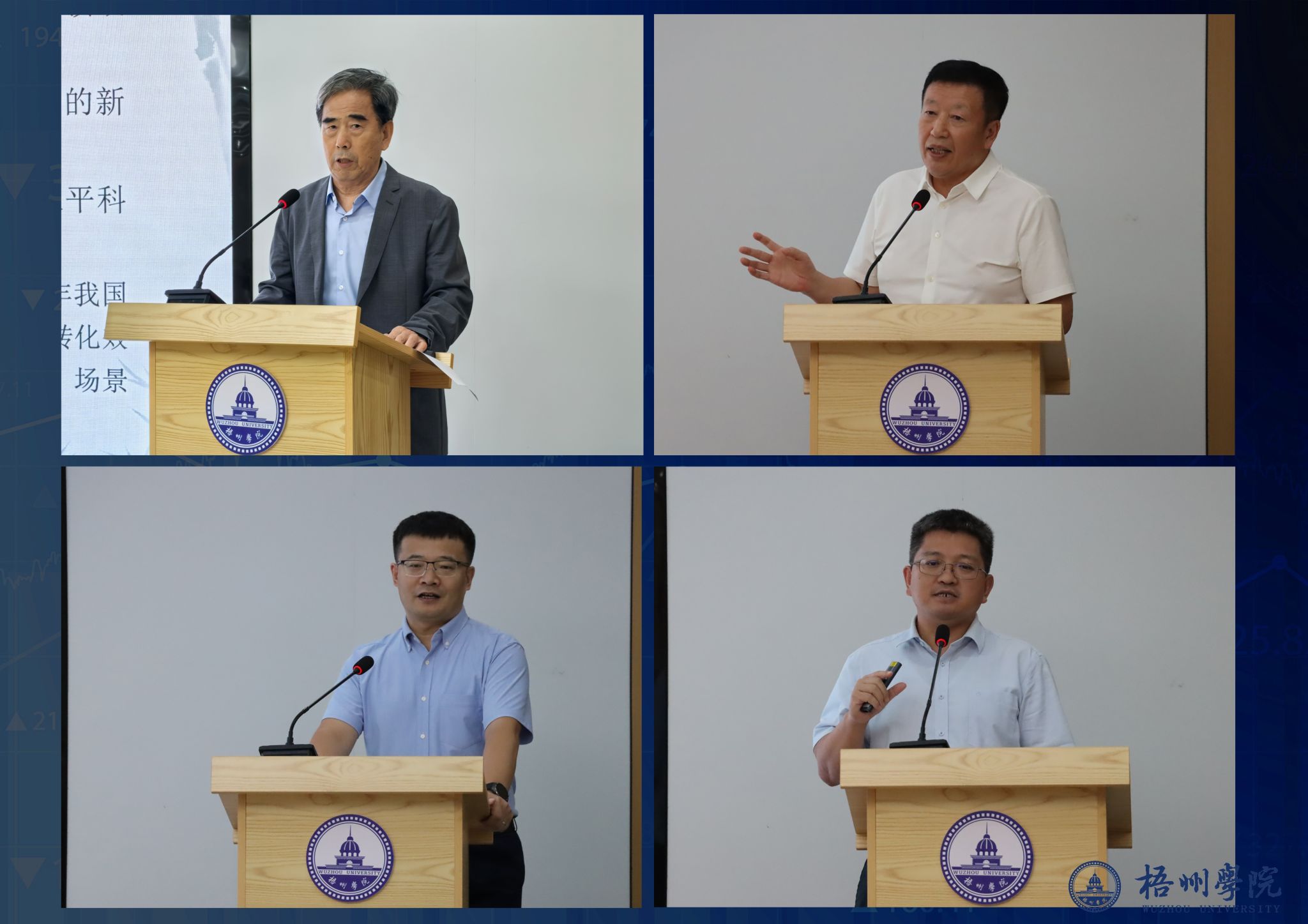 专家作主旨演讲(左上:纪玉山教授,右上:焦方义教授,左下:代栓平教授,右下:刘元胜教授)