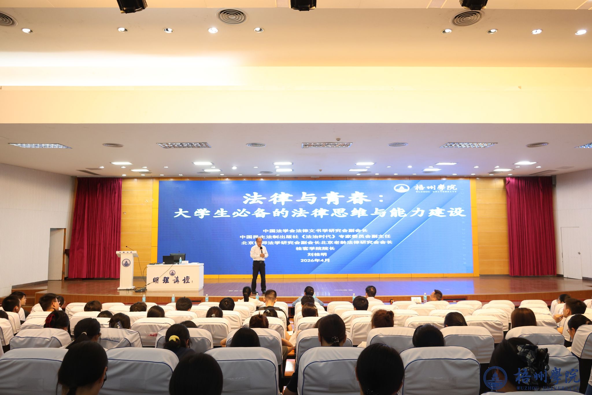 刘桂明总编以《法律与青春:大学生必备的法律思维与能力建设》为主题,从学生成长定位与价值追求、法律思维培育、毕业准备与能力建设等三个层面进行系统讲授。深刻阐释新时代大学生法治素养培育的核心内涵与能力养成路径。他指出大学是人生方向抉择的换乘站、知识与能力提升的加油站、思维格局与法治素养淬炼的充电站,青年学生应当以大学阶段为关键窗口期,系统塑造法律思维、全面提升综合能力,以法治底色点亮青春航向。强调法律思维是大学生立足社会、行稳致远的核心素养,唯有将规则意识、权利观念、证据思维内化于心,才能在成长道路上明辨是非、守住底线、行有所止。