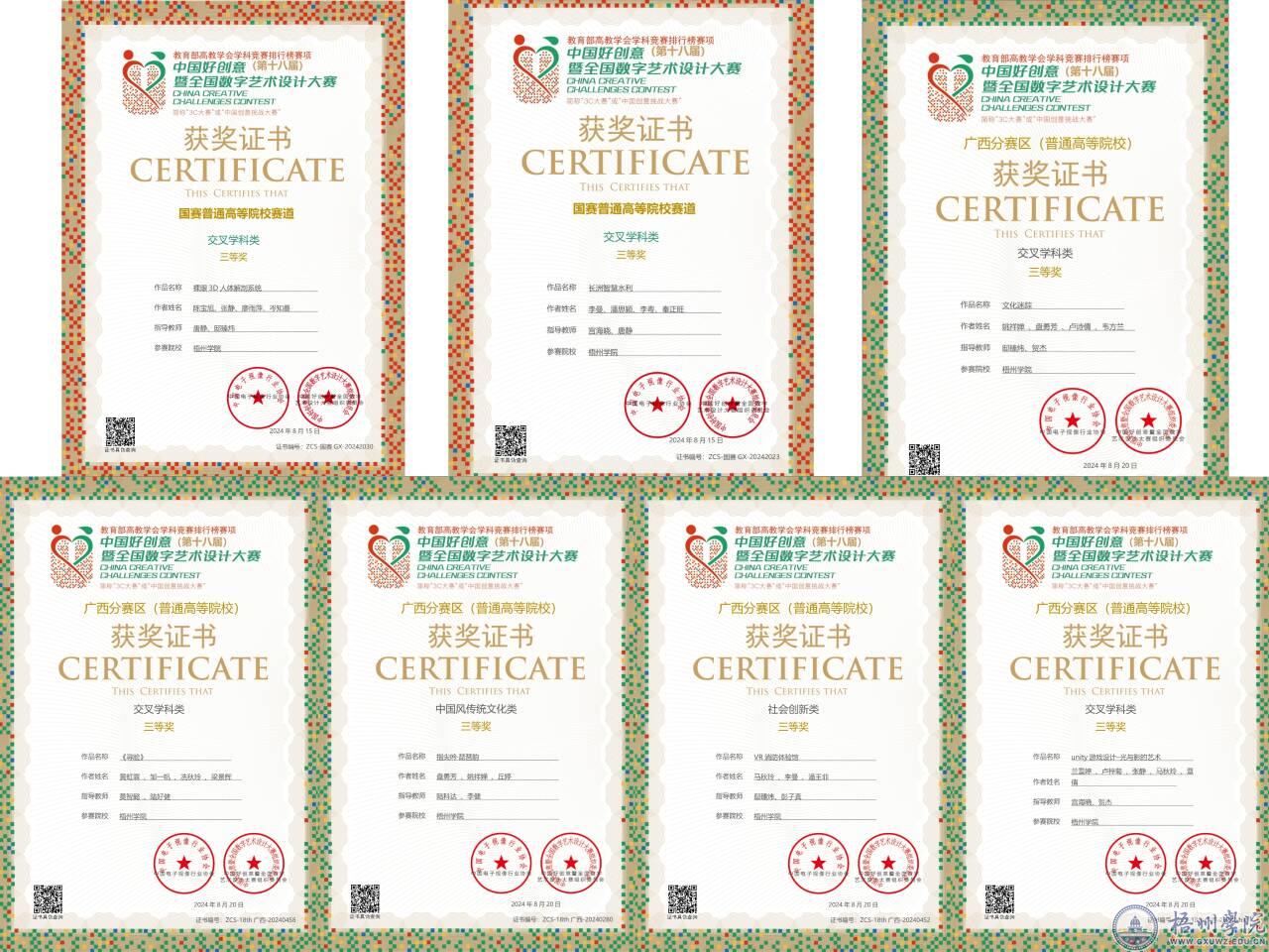 近期,大数据与软件工程学院组织学生参加全国中国好创意暨全国数字艺术设计大赛,获得国赛三等奖2项,广西分赛区三等奖5项的好成绩。