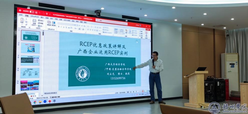 12月15日,管理学院成功举办数智时代我国国际商务发展第十四场学术交流会。广西大学刘主光教授应邀为管理学院、商学院师生作了题为《RCEP优惠政策讲解及广西企业运用RCEP实例》的学术讲座,讲座由管理学院副院长黄河主持。刘主光教授介绍了RCEP的背景与特点,阐述了RCEP具体优惠政策内涵,并结合广西金桂浆纸业有限公司运用RCEP的实例进行了详细解读,刘教授的讲座内容丰富、信息详实,在场师生纷纷表示获益匪浅。
