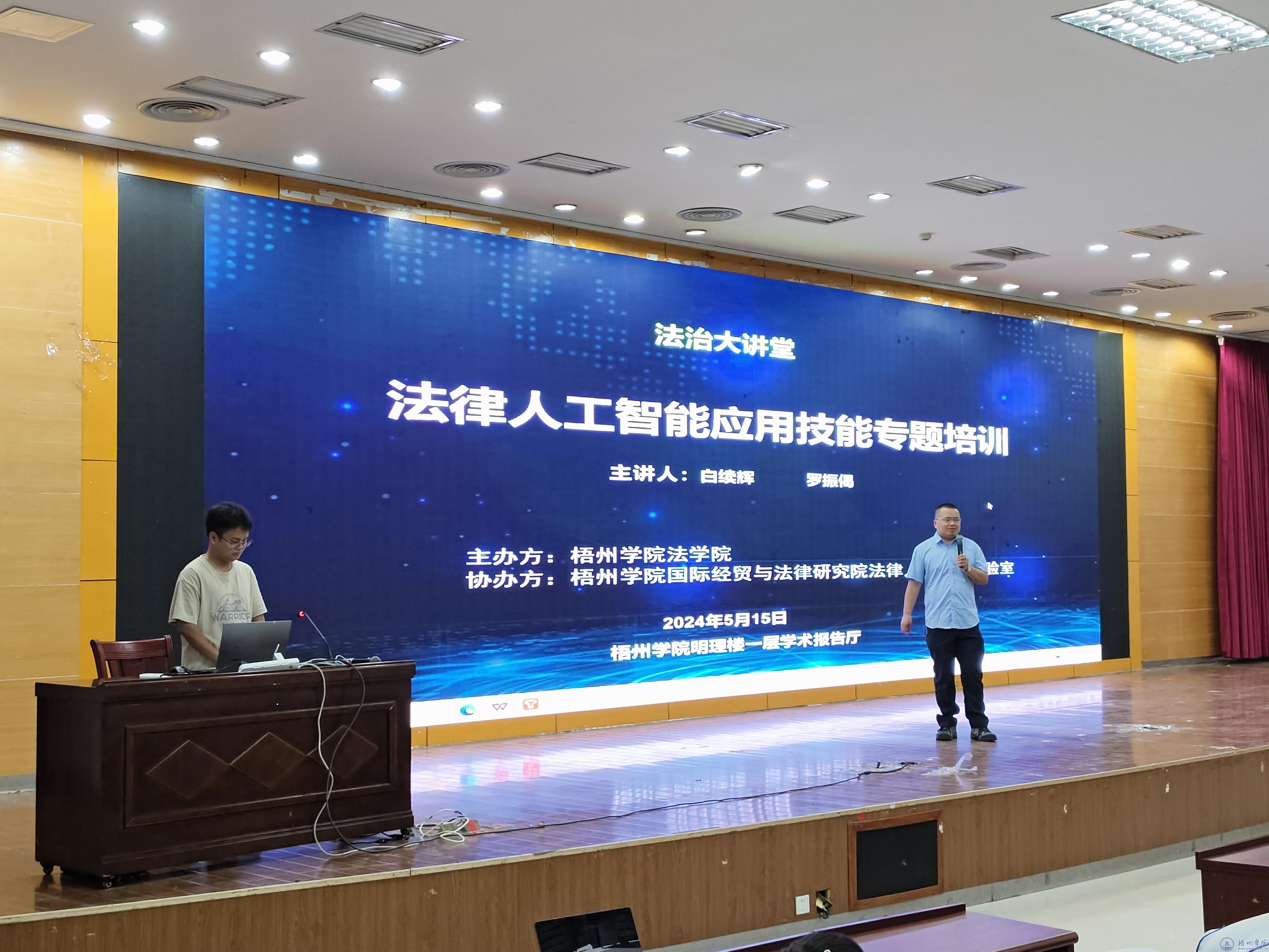 5月15日下午,法学院在明理楼学术报告厅举办第21期法治大讲堂讲座,主题为法律人工智能应用技能。本次讲座旨在贯彻教育部《高等学校人工智能创新行动计划》,落实自治区教育厅关于提升师生数字素养与技能的有关要求,加快推进“人工智能+法学教育”创新,增强广大师生在法律领域对人工智能技术的应用能力。讲座采用“情景剧式现场互动+学术报告”的模式,由法学院副院长白续辉、国际经贸与法律研究院法律人工智能实验室负责人罗振偈主讲,法学院师生代表近300人参加活动。