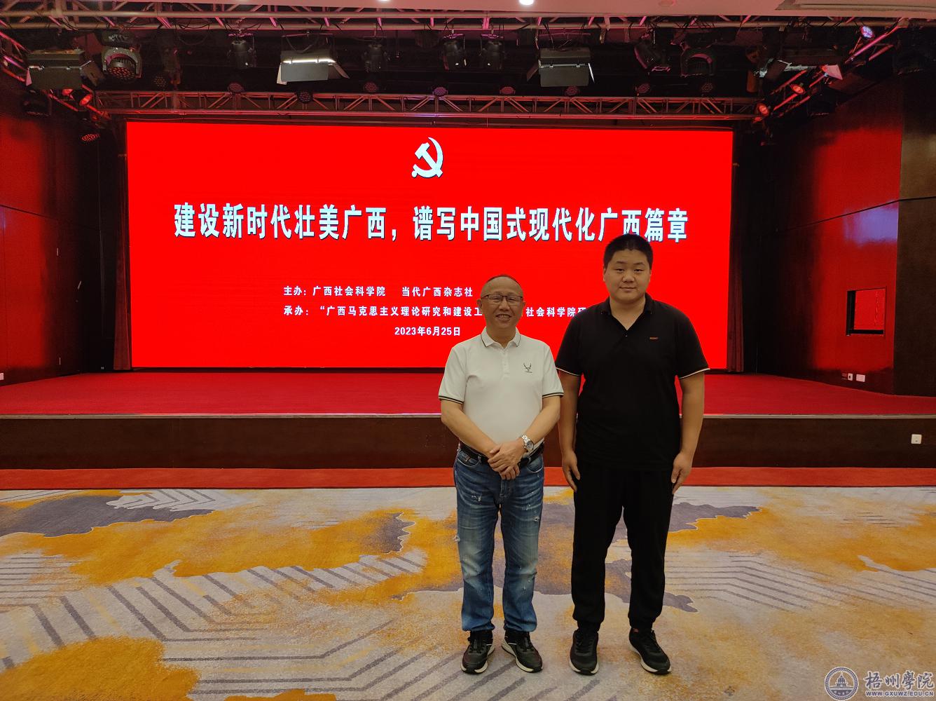 在全党上下深入开展学习贯彻习近平新时代中国特色社会主义思想主题教育之际,6月25日上午,“建设新时代壮美广西,谱写中国式现代化广西篇章”理论界座谈会在南宁成功举行。马克思主义学院院长尹杰钦教授和刘路遥老师受邀参加座谈会。