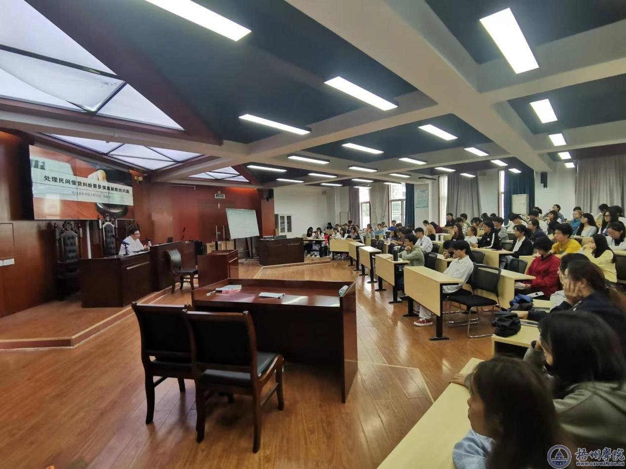 10月11日下午,梧州市长洲区人民法院党组书记、院长张献民在法学院模拟法庭,为法学院2022级学生作“处理民间借贷纠纷需要慎重斟酌的问题”法治专题讲座。会议由法学院白续辉博士主持,法学院2022级全体学生参加了讲座。