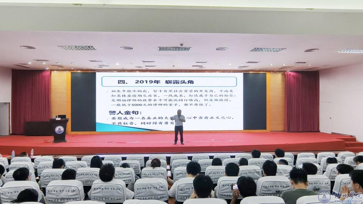 吴明福主任在讲座中以时间轴为主线,将自己的成长经历分为五个阶段:迷茫的青春,破釜沉舟战司考,积蓄力量求突破,一战成名崭露头角,找准定位。吴明福主任的精彩演讲赢得了同学们的阵阵掌声;吴明福主任的成长经历和人生感悟深深感染了台下的莘莘学子,不仅坚定了同学们的专业选择,而且明晰了未来的发展规划。
