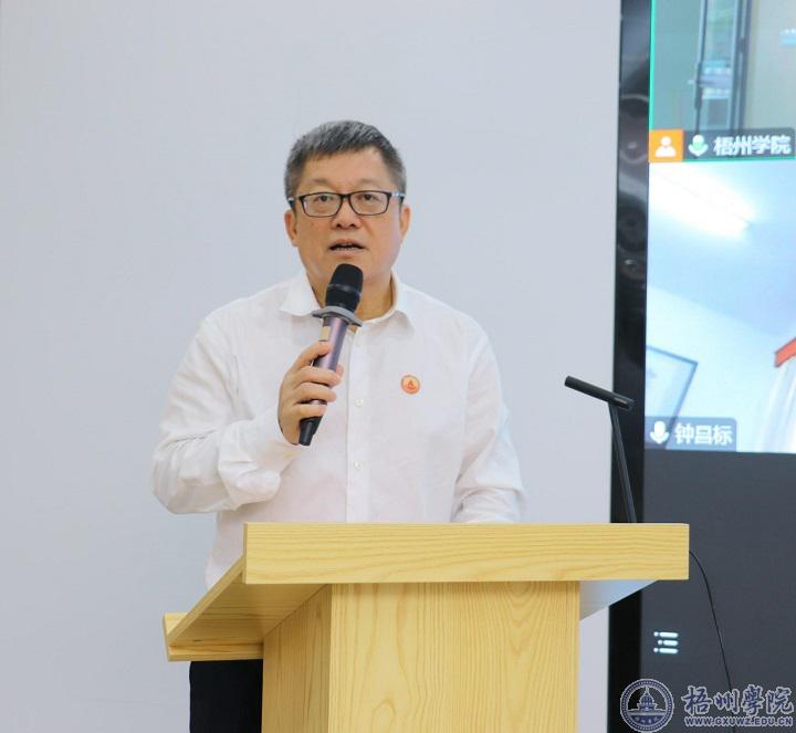 杨奔校长致开幕辞,他对各位专家表示热烈欢迎,并表示举办“数智时代我国国际商务发展学术交流会”,不仅是学校奋力打赢申硕攻坚的现实需要,也是积极贯彻落实党的二十大精神、落实立德树人根本任务、勇担历史使命和责任的生动实践……并预祝本次大会圆满成功,诚意邀请各位专家莅临梧州学院指导。