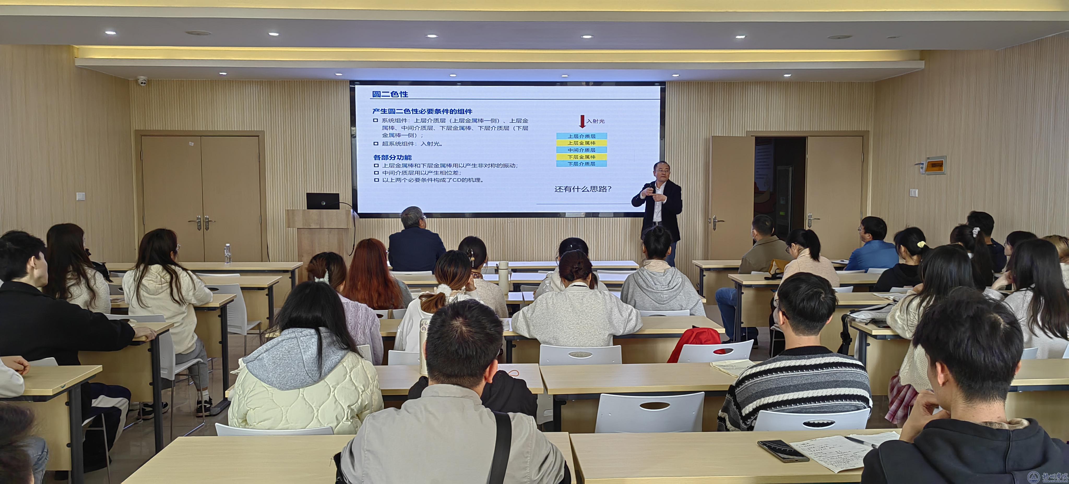 2月28日下午,应电子与信息工程学院邀请,陕西师范大学物理学与信息技术学院教授、博士生导师张中月教授在科技楼11楼学术交流报告厅作题为《手性金属微纳结构的圆二色性和TRIZ创新方法》的专题讲座,电子与信息工程学院师生70余人参加,会议由电子与信息工程学院张文祥院长主持。