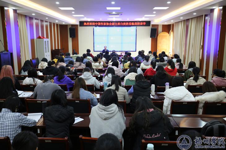 12月9日上午,国内著名学者、作家、评论家、中国作家协会副主席白庚胜应邀到我校为师生作了题为《文化遗产的教育传承》专题讲座。座谈旨在为进一步提升我校师生学术视野,传承中华优秀传统文化。广西作家协会副主席田湘,中国诗歌网总编金石开,文学与传媒学院100多名师生聆听了讲座。文学与传媒学院院长莫敏主持讲座。