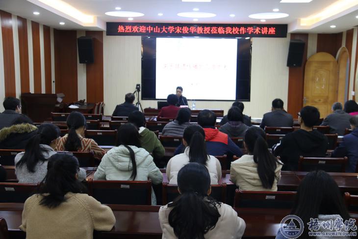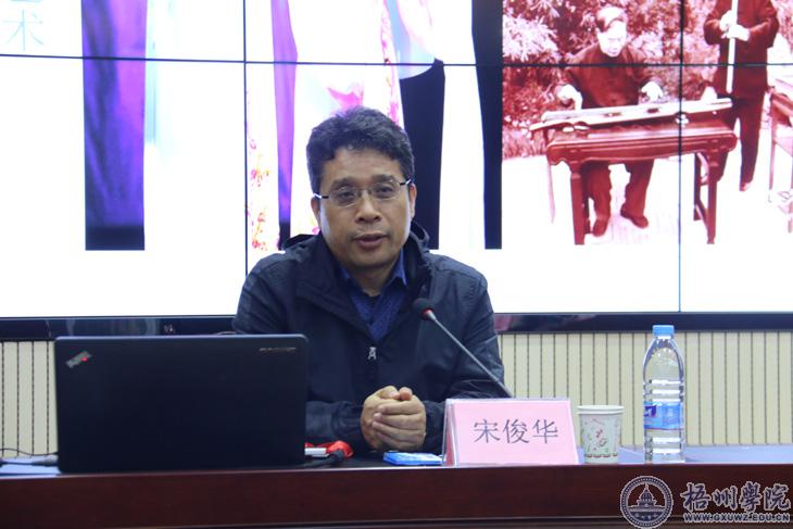1月15日,文学与传媒学院邀请中山大学中文系、中国非物质文化遗产研究中心宋俊华教授在明理楼7楼视频会议室作“关于非遗传播的几点思考”学术讲座。讲座由文学与传媒学院院长莫敏主持,学院全体师生听取了讲座。