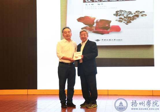 讲座围绕市场常见的宝玉石合成方法以和优化处理方法两个方面展开。此次讲座不仅吸引了梧州学院宝石与艺术设计学院近300名师生,还吸引了70多名梧州宝石行业的企业家。报告结束时,沈教授将他的著作《珠宝玉石优化处理技术》赠送给梧州学院宝石与艺术设计学院,梧州学院图书馆将永久收藏。